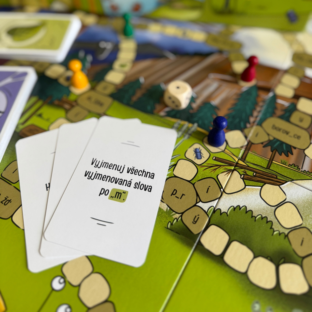 Hráči procházejí herní plán pomocí hodu kostkou a plní různé úkoly, které procvičují správné psaní měkkého a tvrdého i/y. Zábavné úkoly, jako například hledání příbuzných slov nebo vysvětlení významu slov „blýská“ a „blízká“, pomáhají dětem pochopit pravidla a význam vyjmenovaných slov.