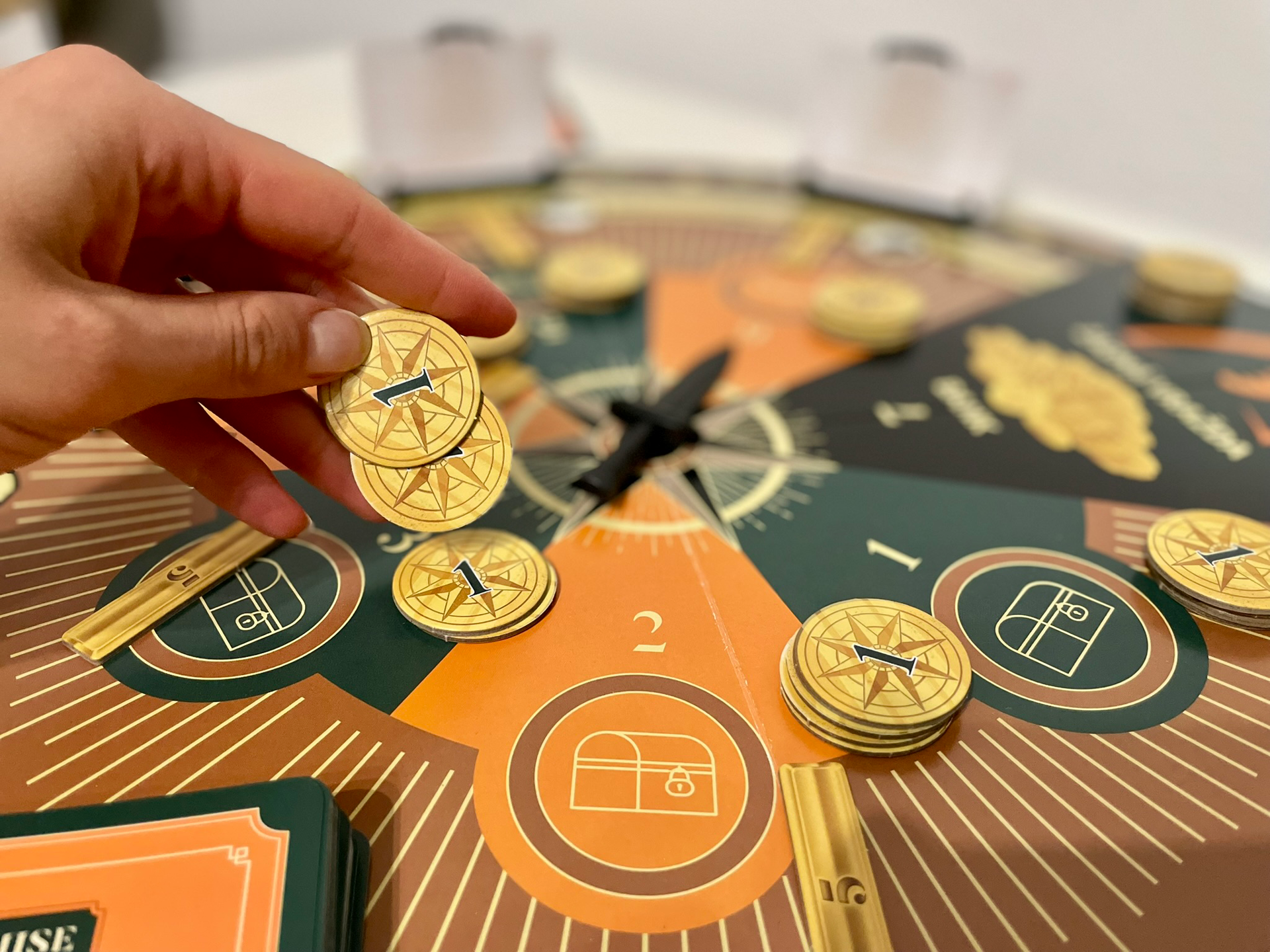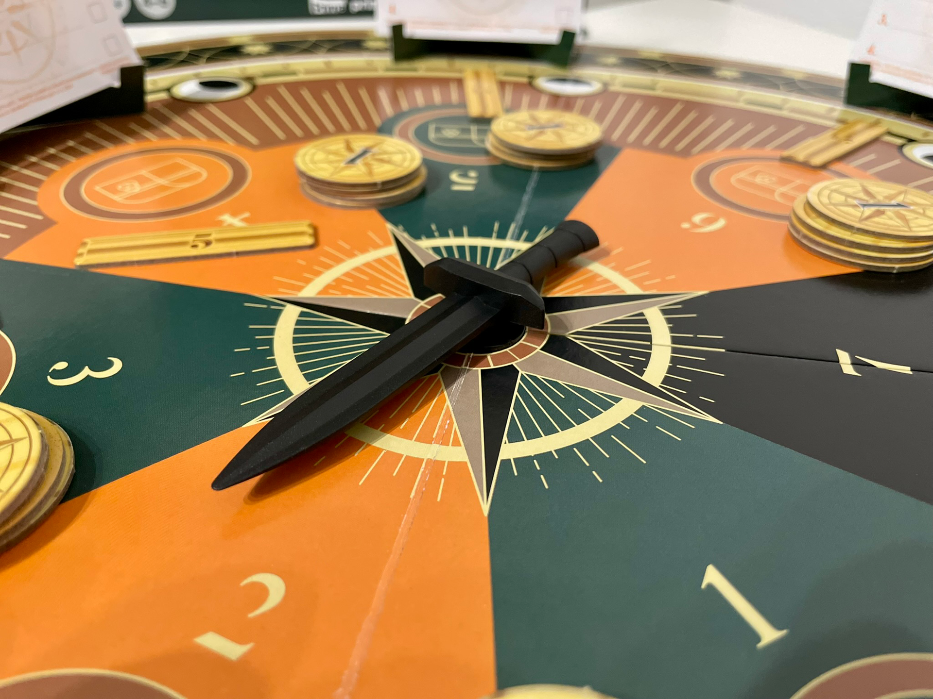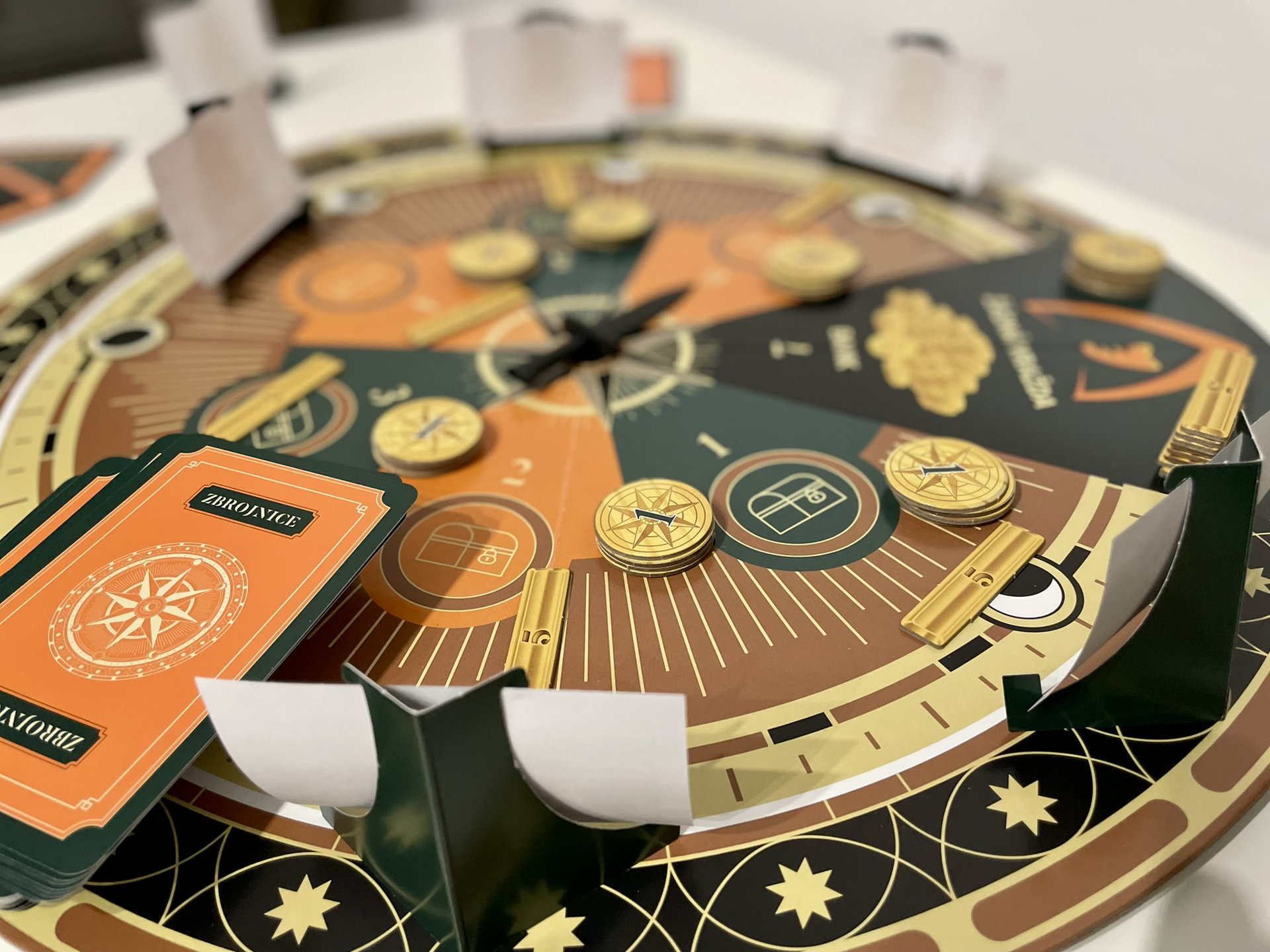 Obsah balení: Kulatá hrací deska s otočnou dýkou, 32 karet s misemi, 32 karet se zbrojnicí, 11 karet s rolemi, 12 karet s odměnami, 30 zlaťáků, 15 zlatých cihel, 48 hlasovacích lístků, 6 hlasovacích stojánků, 6x páska přes oči, kompletní a stručná pravidla hry.