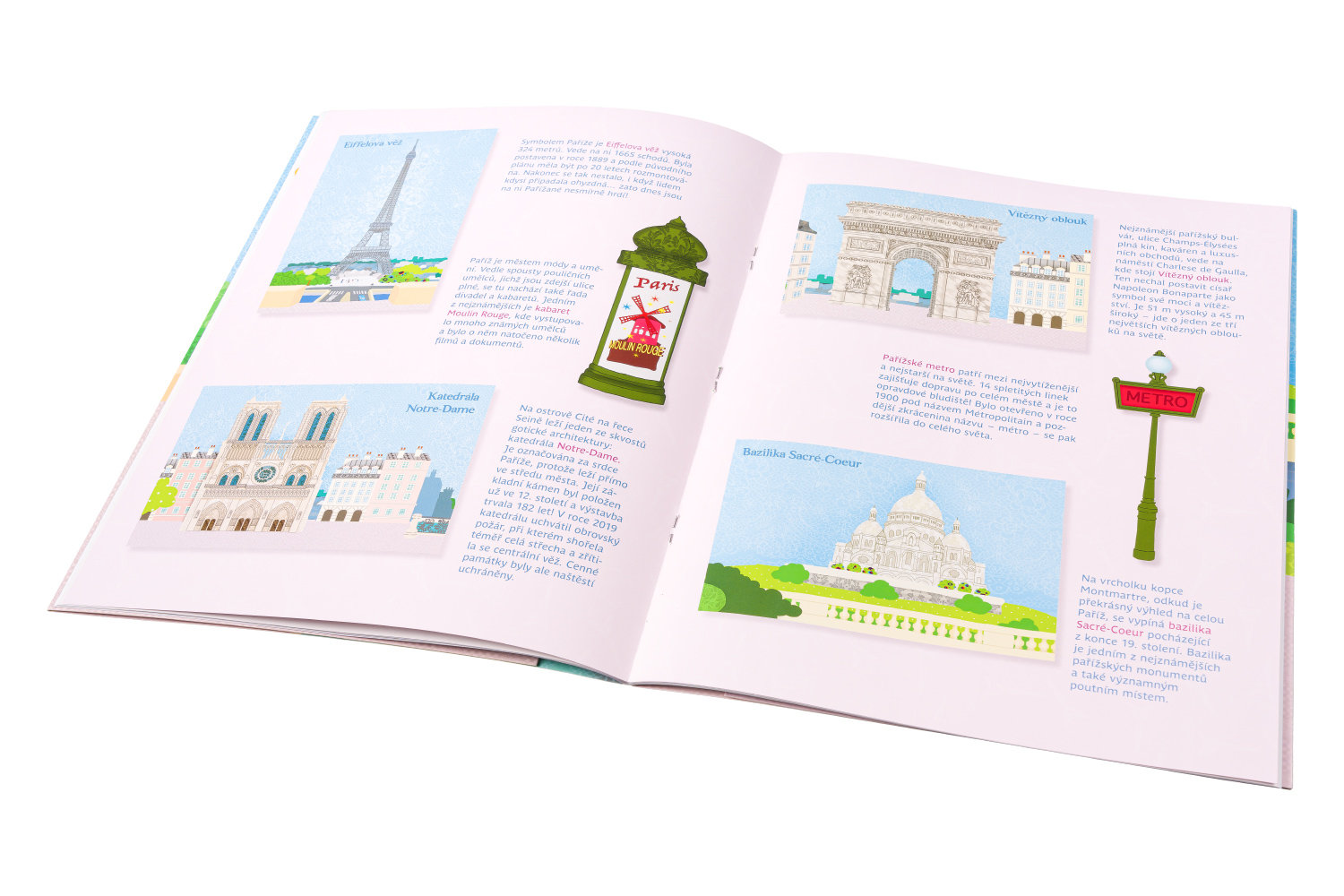 Objevuj s Emmou krásy Paříže! Doplň známá pařížská zákoutí o zamilované páry, květiny a mnoho dalších detailů – máš na to 250 samolepek! Oblíbená série minimiky přichází s další novinkou v podobě zábavné samolepkové knížky, v níž budou děti společně s panenkou Emmou a jejími kamarádkami Amelií a Audrey objevovat nejznámější kouty francouzské metropole Paříže zvané „město zamilovaných“. Pařížskou scenerii mohou doplnit spoustou krásných samolepek podle vlastní fantazie a v knížečce najdou také mnoho zajímavých informací o tamních památkách, známých místech, ale také třeba o delikatesách světově vyhlášené francouzské kuchyně.