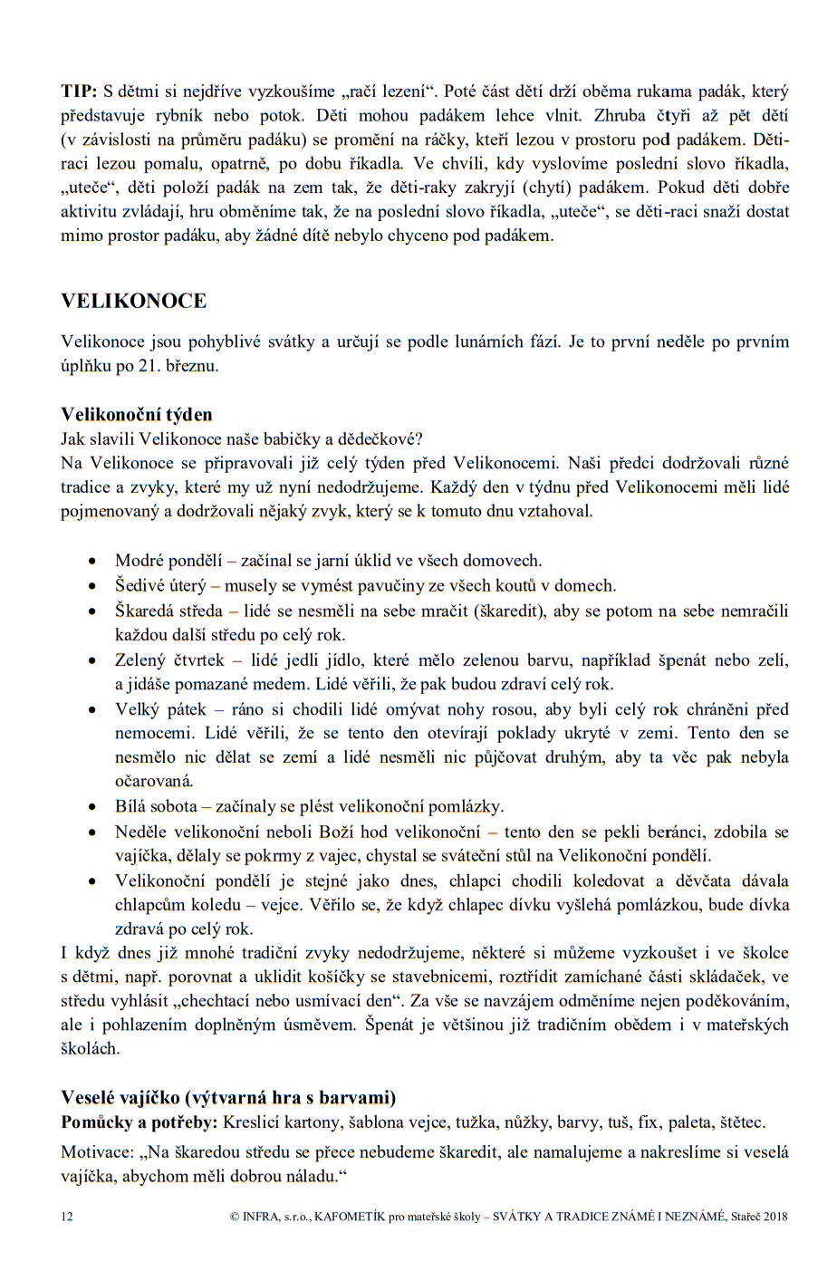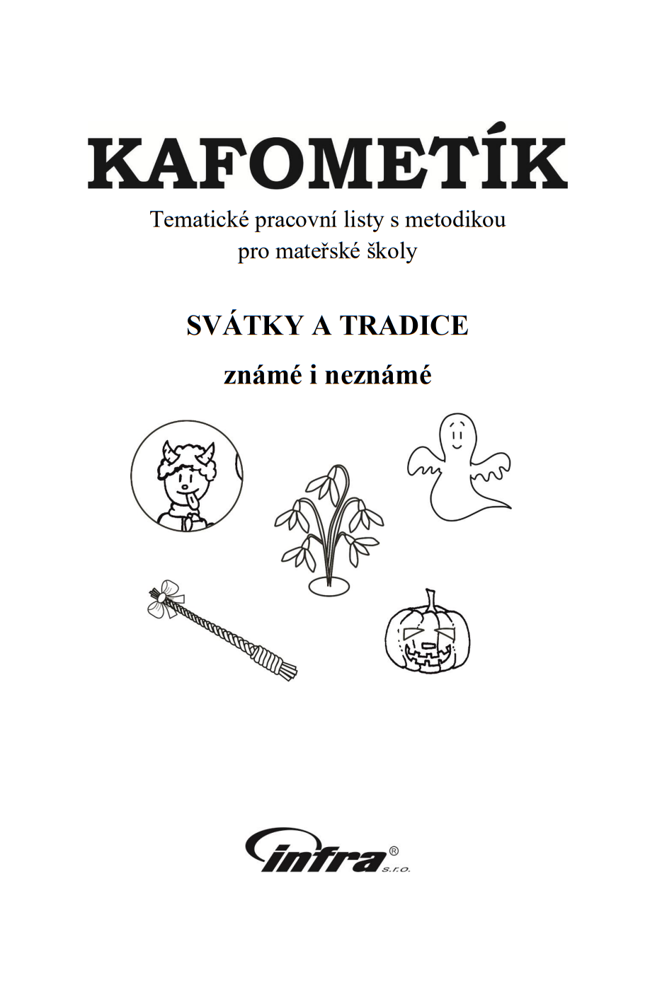 Další volné pokračování řady pracovních listů s metodikou – „KAFOMETÍK“ tentokrát s názvem SVÁTKY A TRADICE známé i neznámé. V tomto již osmém díle najdete dělení podle ročních období a kalendáře. V KAFOMETÍKu se věnujeme tradicím a svátkům, které obvykle zařazujete do svých činností s dětmi, ale najdete zde i méně známé svátky či tradice, o které můžete obohatit svoji nabídku činností.