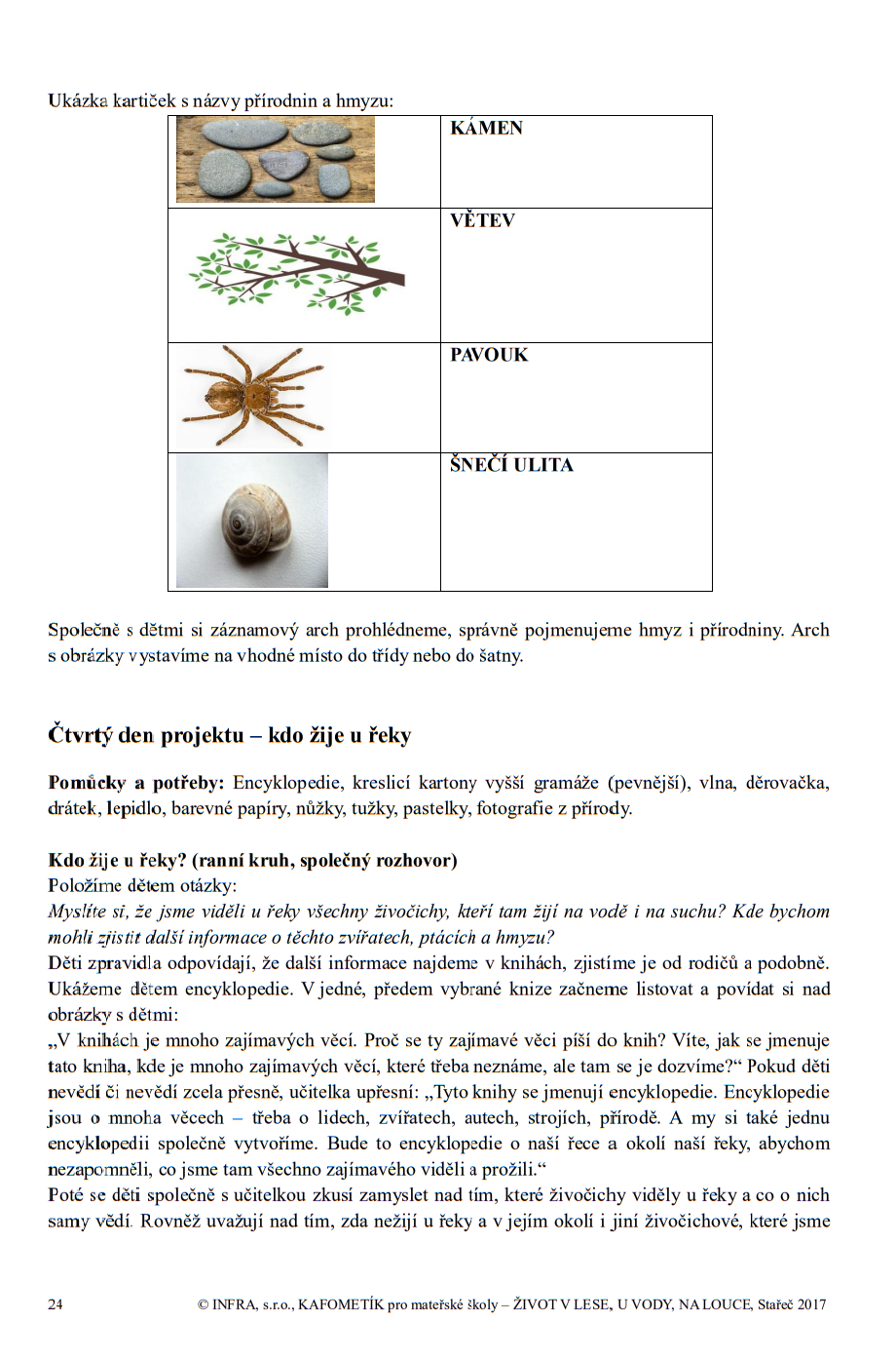 - V poznávacích hrách a aktivitách najdete projekty na pozorování života v okolí řeky a na louce, tvoření encyklopedie a další zajímavé náměty.