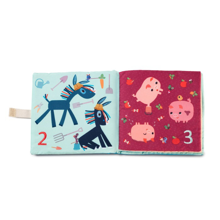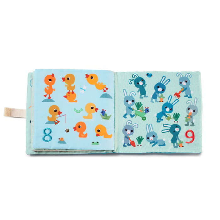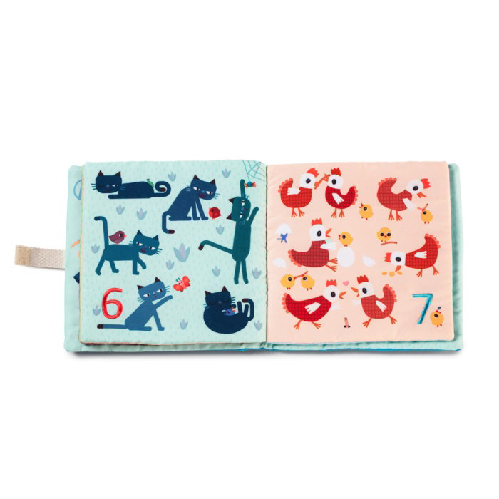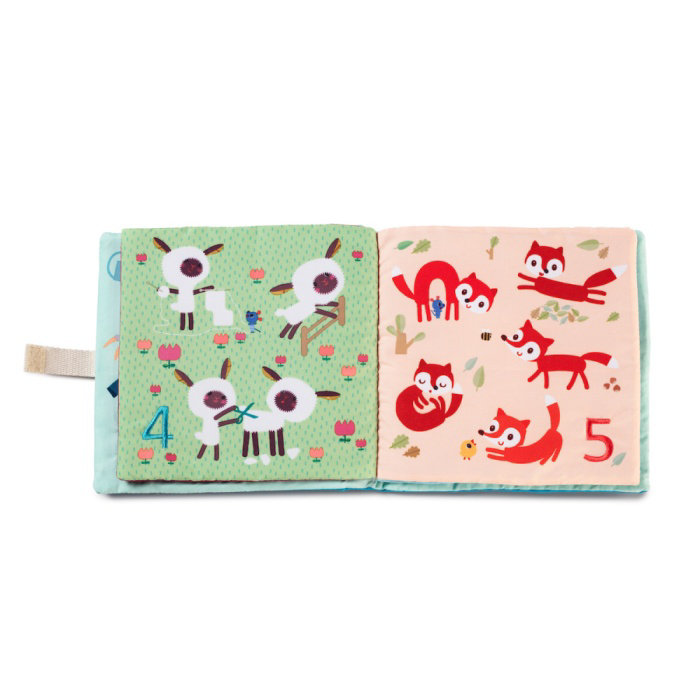 Krásná textilní knížka je určena pro děti od 18 měsíců. Děti se seznamují s čísly a jednoduchou matematikou. Knížka je navržena tak, aby děti zaujala a přiměla je formou hry k učení. Knížka je jednoduchá pro manipulaci. Stránky jsou očíslovány od 1 do 9, děti tak mohou počítat a poznávat různá zvířata současně. Rozměry knížky jsou 16 x 2 x 16 cm. Lze prát v pračce na jemný cyklus při 30°C. Vyrobeno ze 100% polyesteru.