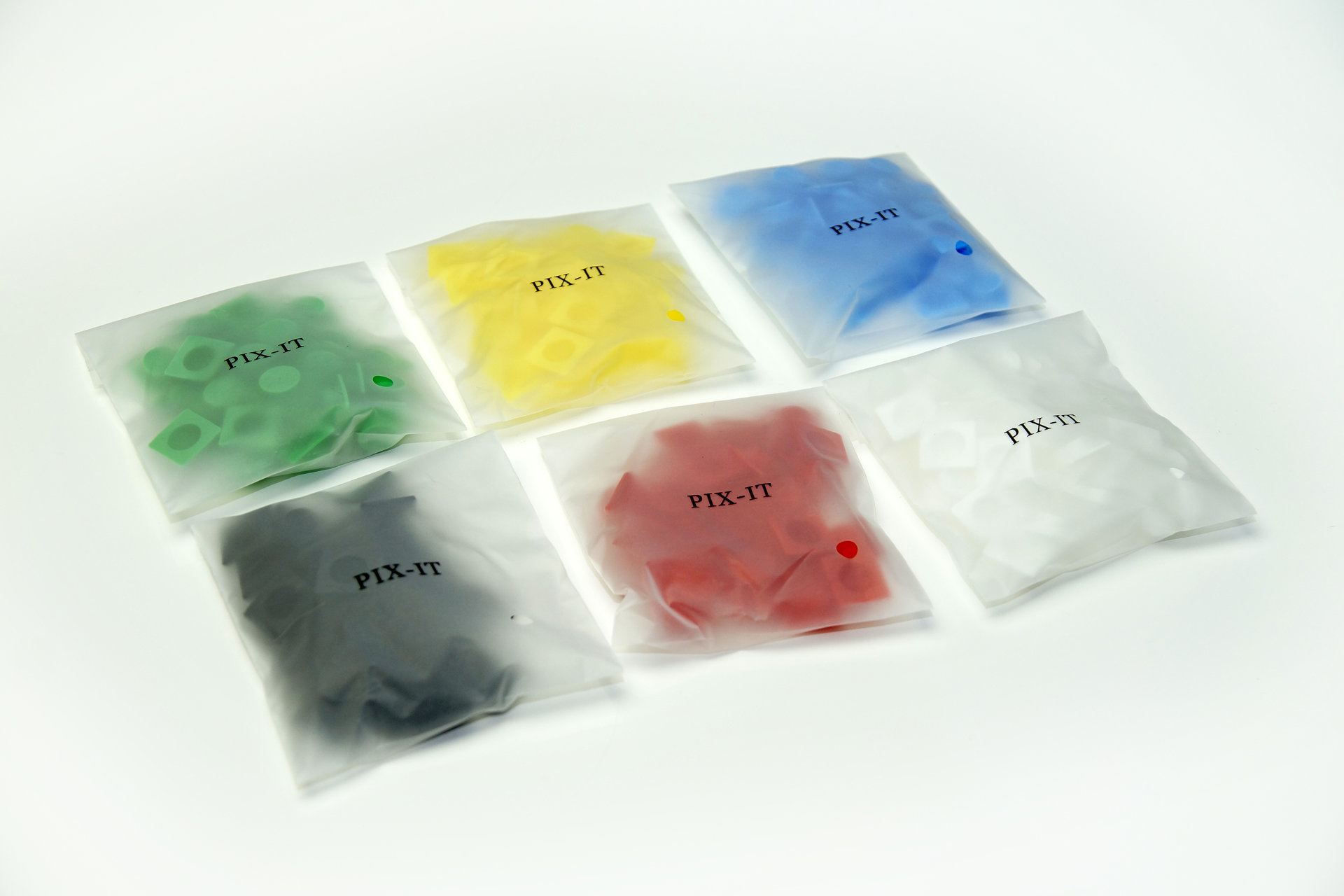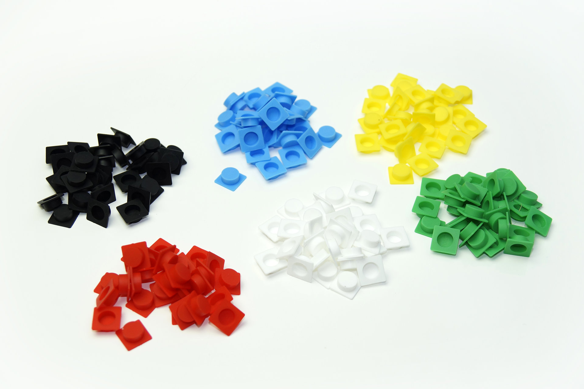 180 kusů v 6 sáčcích (30x červené, 30x zelené, 30x modré, 30x žluté, 30x bílé a 30x černé).