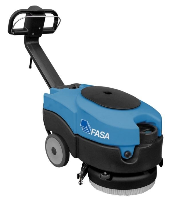 Bateriový mycí stroj na podlahu A1 36B FASA, baterie 12 V, mycí záběr 360 mm, délka sušící lišty 460 mm, otáčení na malém prostoru, nabíječka baterie, ukazatel stavu baterie s automatikou vypnutí, systém rychlé výměny kotouče. Baterie součástí základní výbavy.