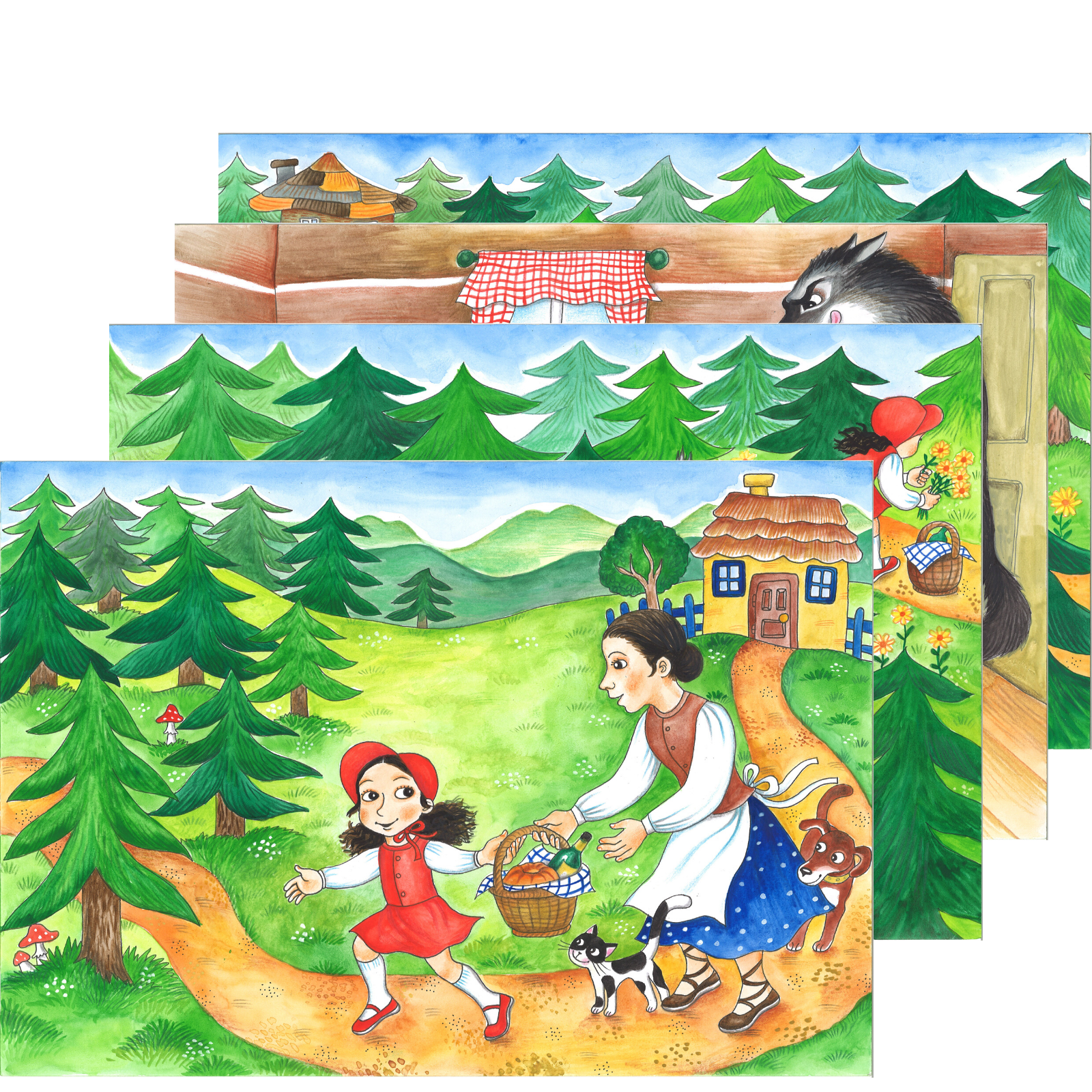 Klasická pohádka Červená Karkulka zpracovaná pro použití v Pohádkovém kufříku. Unikátní obrázková knížka je zpracována na 10 volných tvrdých laminovaných listech formátu A3. Přední strana listu otočená k publiku (k dětem) je zcela pokryta ilustrací, zadní strana obsahuje černobílou zmenšeninu ilustrace a texty, případně metodické poznámky k textu a rozhovorům s dětmi.
