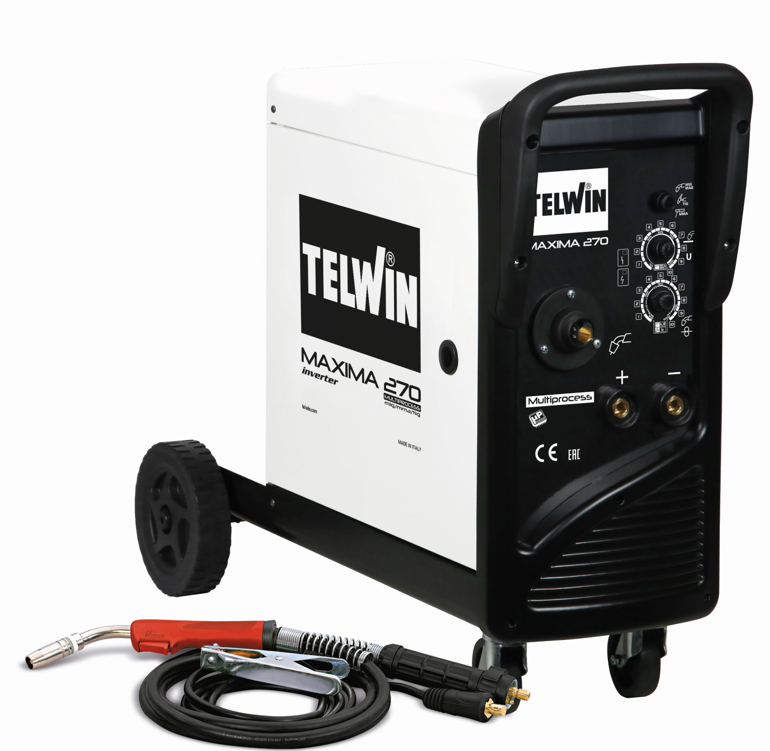 Svářečka CO2 - Svářecí invertor CO2 (MIG-MAG)/MMA/TIG Maxima 270 Telwin, microprocesorem řízený svářecí invertor CO2 MIG-MAG, pro sváření bez plynu i s plynem, TIG DC/LIFT, pro sváření obalenou elektrodou MMA. Profesionální stroj pro autoopravárenství a zámečnické provozy.