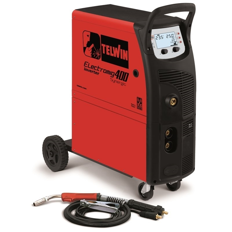 Svářečka CO2 - Svářecí invertor CO2 (MIG-MAG) ELECTROMIG 400 Synergic Telwin, mikroprocesorově řízený svařovací stroj MIG-MAG / FLUX / BRAZING / MMA a TIG DC-Lift. Flexibilita použití pro různé materiály svařované (ocel, nerezová ocel, hliník) nebo svary pájené (pozinkované plechy).