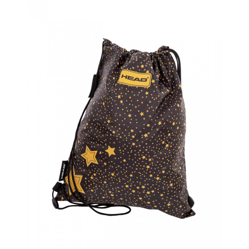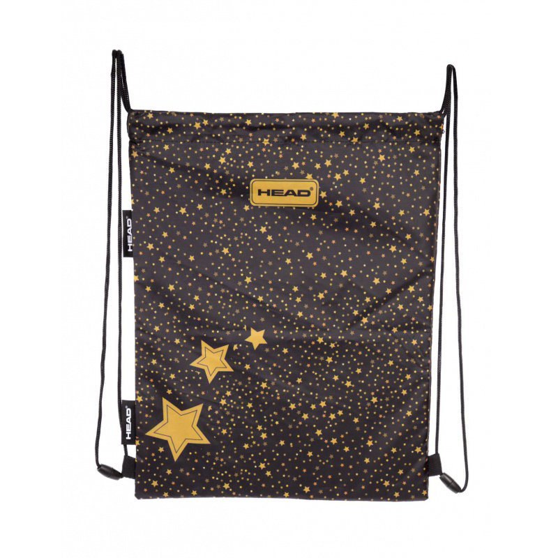 Taška na boty Head v černé, šťavnaté barvě. Je pokryta vzorem tisíců zlatých hvězd. Ocení ji všichni mladí milovníci elegantních doplňků. Taška má dvojité boční šňůrky s bezpečnostním konektorem, které vám umožní nosit ji v ruce, na rameni nebo na zádech. Na zadní straně tašky na boty Head je navíc štítek pro zapsání osobních údajů studenta.